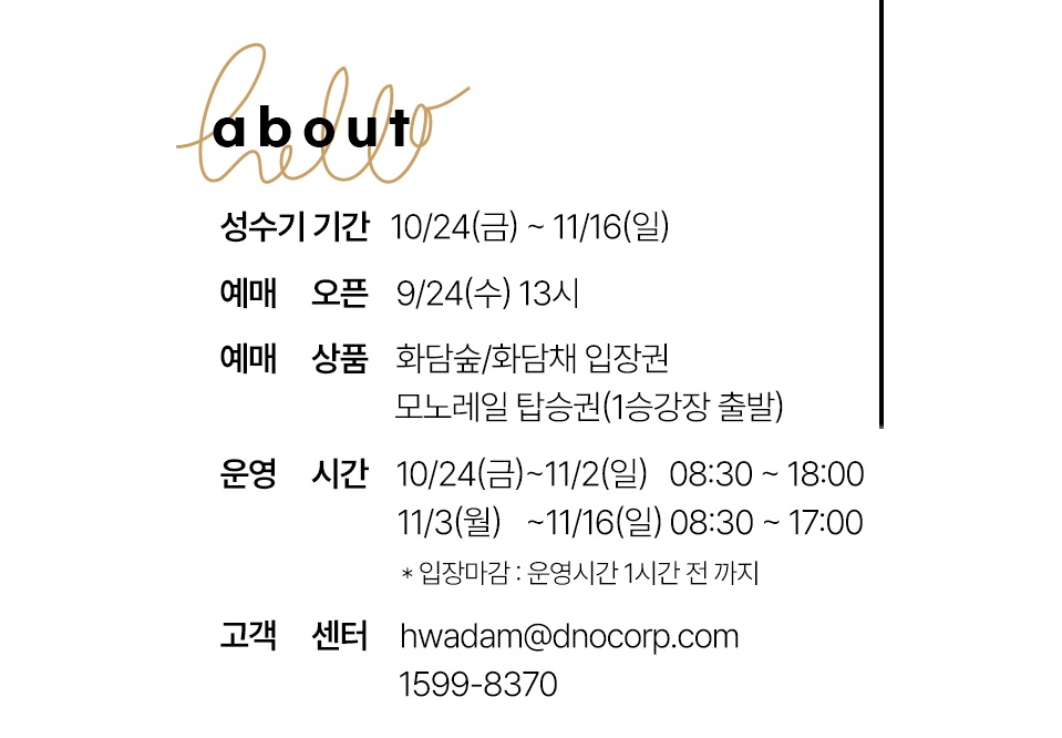 ✔ 성수기 기간: 10월 24일(금) ~ 11월 16일(일)
