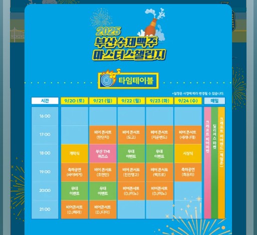 | 2025. 9. 20(토) ~ 9. 24(수) | 16:00 ~ 22:00 | 부산 벡스코 야외광장 |