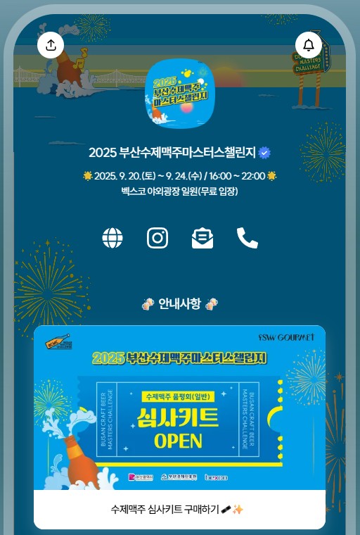 공식 인스타그램에서 실시간 업데이트되며, 다양한 수제맥주 브랜드가 참여합니다.