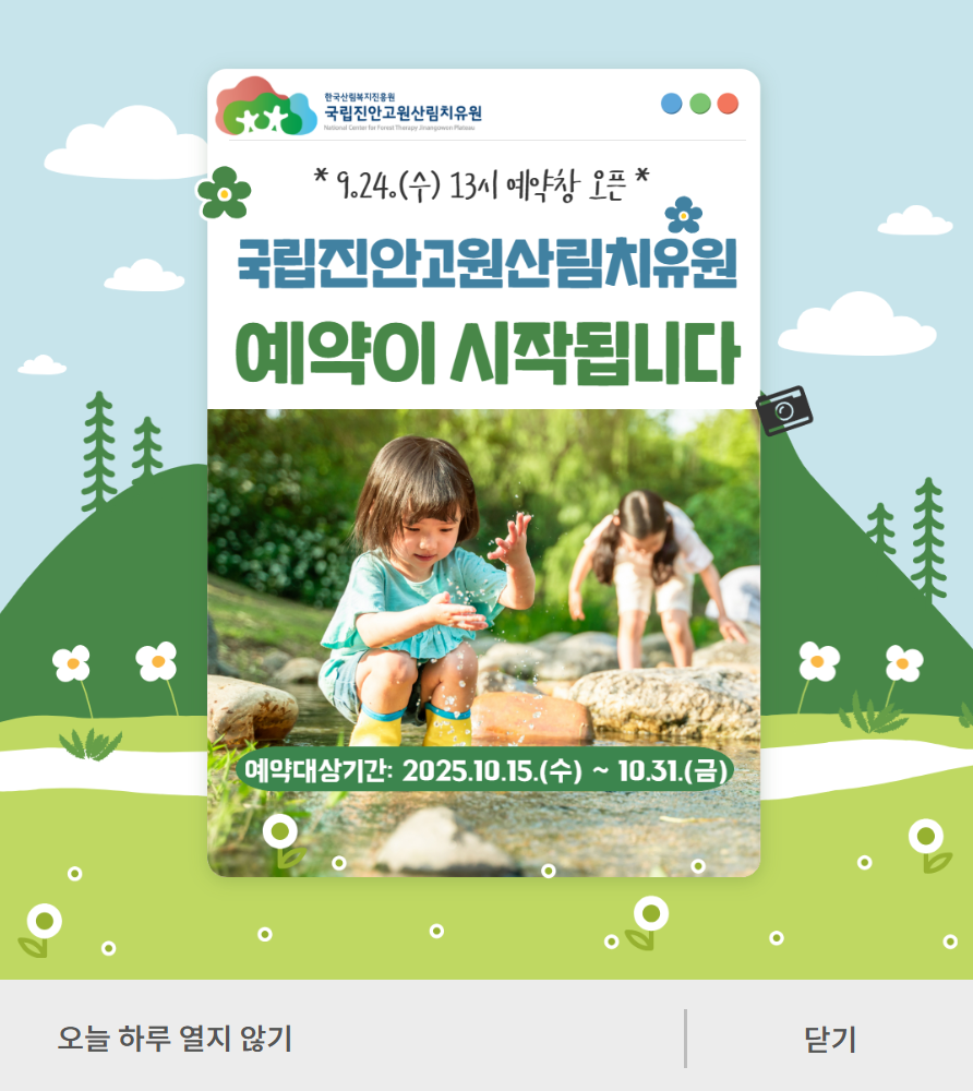 지금 바로 ‘국립진안고원산림치유원’에서 회복의 시간을 만나보세요. ⏰