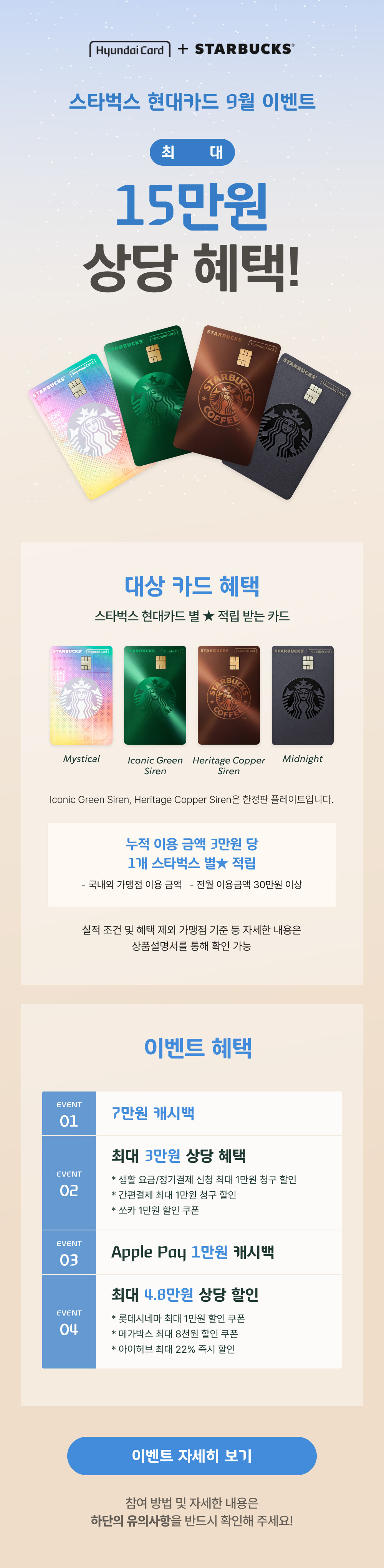 | 현대카드 리워드 | 2025.09.01 ~ 2025.09.30 | 별 추가 적립, 상품권 증정 |