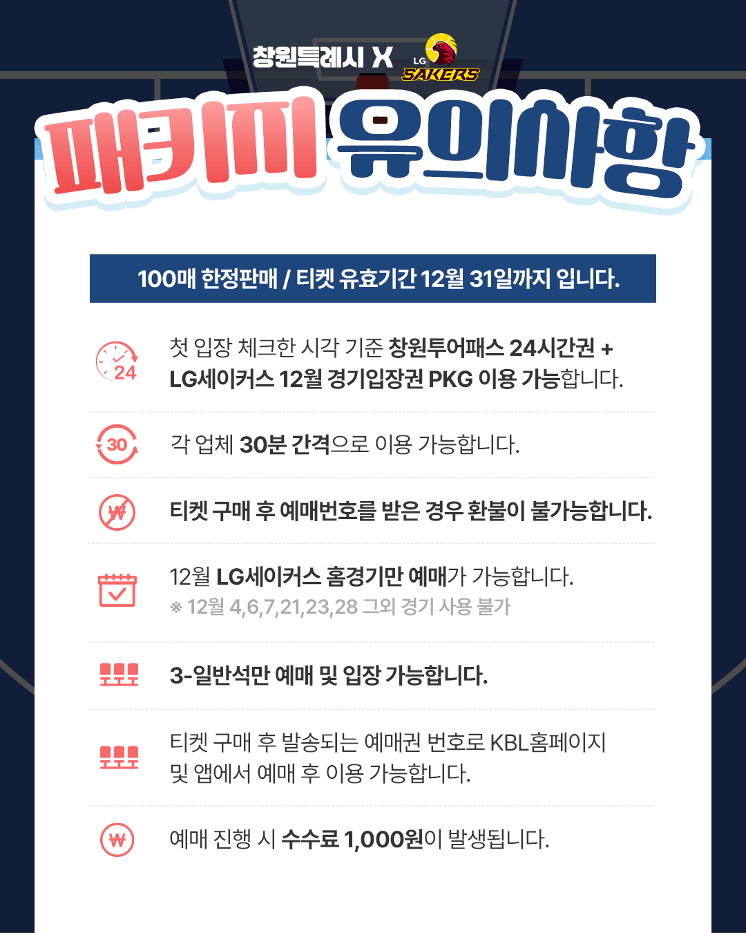 12월 LG세이커스 홈경기 일정 내 사용 가능
